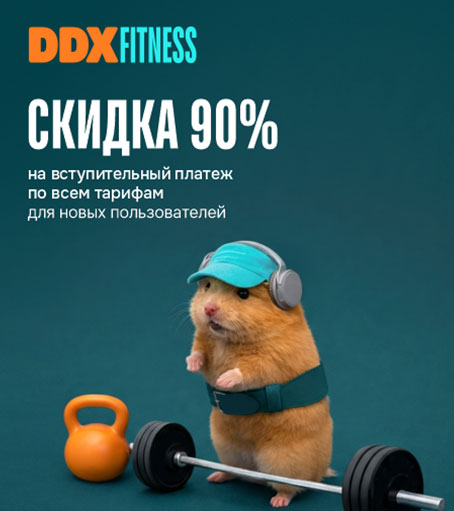 Скидка 70% на вступительный платеж в сети фитнес-клубов DDX Fitness*